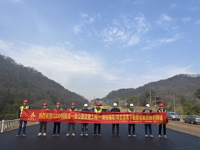 3月7日上午,銅陵G330項目順利完成試驗段瀝青下面層攤鋪任務,項目路面施工步入新階段。