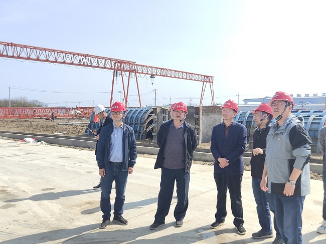 王光銀一行實地察看了混凝土拌合站、預制梁場、鋼筋加工配送中心等施工現場。對項目施工進度、工程質量、安全文明管理進行了深入了解,聽取了項目負責人對項目建設前期的準備工作等方面的匯報。