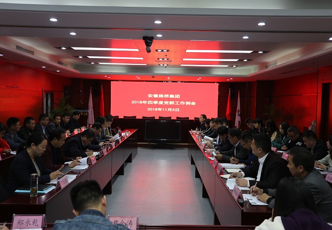 11月5日下午,安徽路橋集團(tuán)在安建大廈8樓會(huì)議室召開2018年四季度黨群工作例會(huì)。公司黨委書記、董事長(zhǎng)盛明宏,公司黨委委員、工會(huì)主席王永來(lái)出席會(huì)議,公司黨委委員、紀(jì)委書記王勝利主持會(huì)議。所屬各基層黨總支、支部、工會(huì)、團(tuán)組織主要負(fù)責(zé)同志及公司機(jī)關(guān)黨群部門負(fù)責(zé)人參加會(huì)議。