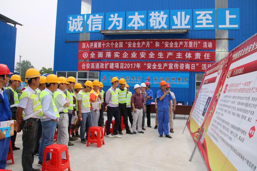 合安高速改擴建項目通過安全知識講座、安全宣傳資料發(fā)放、安全宣傳展板展示、安全知識咨詢講解、安全體驗區(qū)體驗等方式,調動一線工人對安全生產的關注。