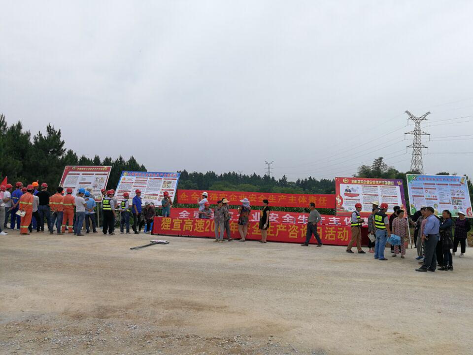貍宣高速路面一標、二標聯(lián)合開展安全生產月咨詢日活動,邀請業(yè)主、監(jiān)理等單位參加,對本年度安全生產月展板講解及對周邊村民發(fā)放宣傳資料并開展安全知識咨詢活動。