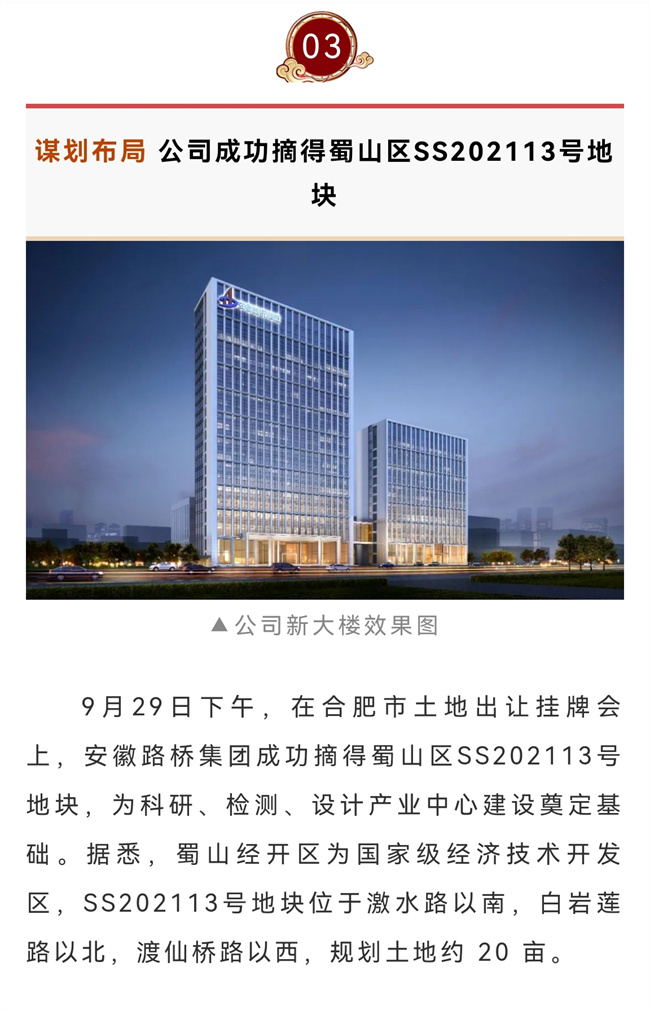 2021年是中國共產黨建黨100周年,也是“十四五”開局之年。在建工控股、建工股份兩級黨委的領導下,公司黨委堅持以習近平新時代中國特色社會主義思想為指導,深入貫徹集團公司2021年工作會議精神和公司二屆七次職代會精神,圍繞“開好局、起好步”,實施黨建引領,推動規劃落實,健全管理體系,優化資源配置,構建核心能力,培育優勢品牌,深入貫徹新發展理念,在力保“十四五”首戰必勝中開新局,為打造“千億建工”貢獻百億力量。現將2021年度十件大事總結如下: