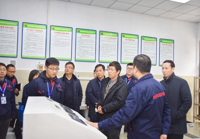 王厚良董事長一行分別查看了檢測公司下屬的三十余個功能試驗室,詳細了解設備儀器的功能、參數及運行情況。在得知檢測公司的儀器設備可通過掃描二維碼查詢設備儀器信息后,王厚良董事長興致勃勃的拿出手機,親自掃碼查看,對檢測公司的信息化管理能力給予充分認可。