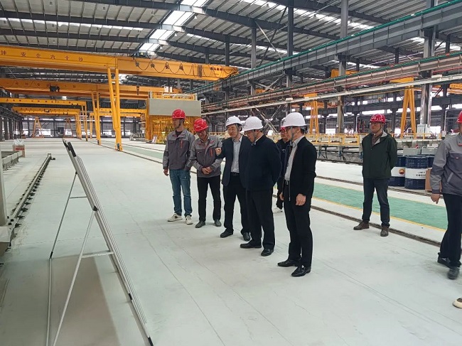 李有貴一行察看了研發辦公樓、職工中心、宿舍樓等建成情況。在鋼結構重鋼廠房,李有貴詳細了解了鋼結構生產制造過程中的智能設備、先進流水線、特殊工藝以及2023年的各項經營目標,并對交通智造公司當前各項工作給予了高度肯定。