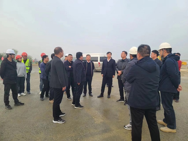 周天斌一行深入項目施工現場,聽取了項目負責人關于項目概況、建設進展情況、安全文明施工等方面的匯報。