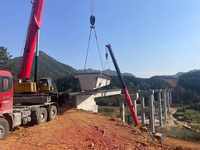 面對山區(qū)地理位置特殊、高空作業(yè)的安全風(fēng)險,為確保首片預(yù)制箱梁順利架設(shè),項目部精心策劃、科學(xué)部署,針對箱梁架設(shè)的設(shè)備安裝、人員組織、施工安全、質(zhì)量管理等生產(chǎn)要素制定了詳細(xì)的專項方案和應(yīng)急預(yù)案。在箱梁運輸過程中,項目部組織運梁班組查看運輸路線,全程跟蹤疏導(dǎo)交通,尤其是在山區(qū)轉(zhuǎn)彎、坡路等路段增派人員,加強(qiáng)指揮檢查。施工現(xiàn)場,技術(shù)人員對作業(yè)人員進(jìn)行了詳細(xì)的技術(shù)交底與安全交底,為加強(qiáng)施工現(xiàn)場過程控制,管理人員對吊機(jī)、起重機(jī)、運梁車等進(jìn)行反復(fù)檢測、操作、試運行,按照架設(shè)操作規(guī)程操作,統(tǒng)一安排,相互配合,圓滿完成了首片箱梁架設(shè)任務(wù)。