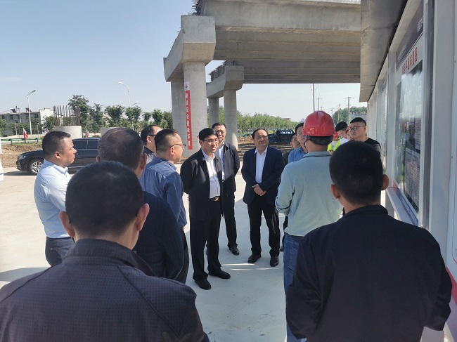 劉玉建一行深入項目施工現場以及桃樹種植園征遷現場,聽取了項目負責人關于項目施工進展情況、施工安全責任落實情況的匯報,并詳細了解了項目建設中遇到的困難和問題。在項目部會議室召開合周高速(阜南段)征地拆遷、土方籌集問題專題會,對會上提出的問題進行現場研究指導。