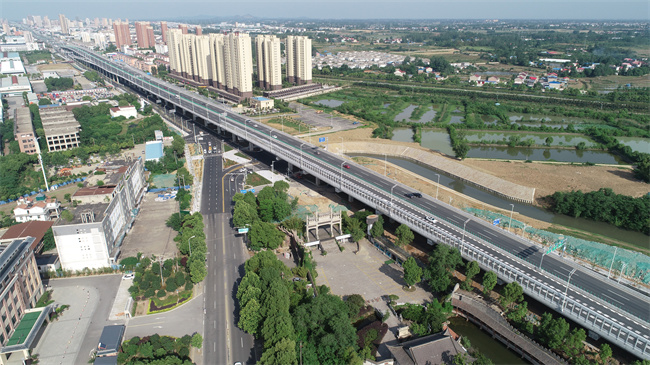 G312合六界至迎賓大道交口段快速化改造工程由安徽建工建設投資集團有限公司牽頭實施,是推進合六同城化戰略、支撐合六經濟走廊建設的交通重點工程,項目建成后,六安至合肥車程縮短至45分鐘。項目起點位于六安、合肥兩市交界處,終點位于六安市迎賓大道交口以西,全長17.65公里,按照一級公路兼顧城市快速路標準,采用節點高架+地面快速路設計方案,主線雙向六車道+輔道雙向四車道,設計時速主線80公里/小時、輔道50公里/小時,全線取消紅綠燈。作為全省首個全預制橋梁項目,共設主線橋10座、匝道橋3座、人行過街天橋8座,裝配率達93.9%,采用集中預制、集中運輸、集中安裝方式,較現澆法施工縮短工期3.5個月。其中迎賓大道主線橋為項目主線橋中長度最長、跨度最大的,是項目橋梁施工“369”節點的控制性工程。全長1272.5m,共計12聯39跨,第3聯為55m跨文蔚路鋼箱梁,第10聯為45+70+45m跨迎賓大道鋼箱梁,其余為3-4跨一聯的預制箱梁。施工內容包括樁基172根,承臺40個,裝配式π型墩32座,現澆π型墩6座,預制箱梁315片,鋼箱梁16片,預制橋面板138片。自2022年1月6日啟動樁基首件施工,至2022年9月25日順利完成橋面系工作,歷時251天,實現了主線橋梁貫通,標志著項目9月節點的順利完成。