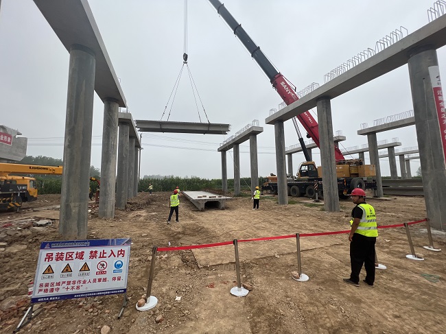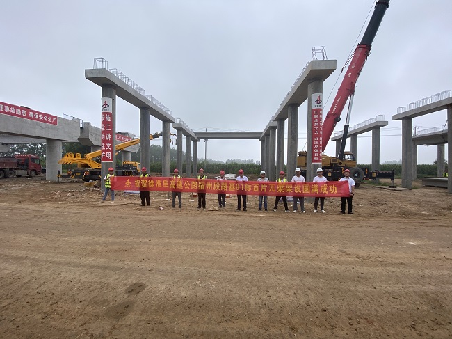 8月6日上午9點整,由建工建投集團承建的徐州至淮北至阜陽高速公路宿州段路基01標項目K1+241.5樁板式橋首片13mπ梁順利架設,標志著項目樁板式橋梁上部結構已正式啟動施工。