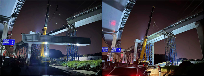 G312合六路(南崗鎮-侯店路)項目A7聯G段匝道橋最后一片鋼箱梁順利完成吊裝