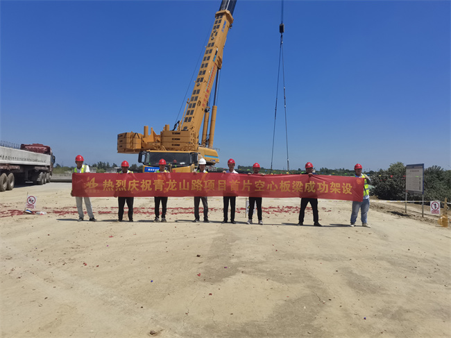 新站高新區青龍山路(梅沖湖路-荃湖北路)道路工程首片空心板梁成功架設