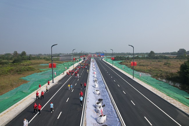 表揚信中指出,自項目開工以來,面臨高溫、雨季、工期緊和任務重等諸多不利因素,建工建投集團項目部全體員工統一思想,盡職盡責,迎難而上,精心組織管理,始終堅守在各自工作崗位上,鉚足干勁加油干,搶抓時機不放松,充分發揚了“特別能吃苦、特別能戰斗、特別能忍耐、特別能奉獻”的精神。在項目的精心組織下,2023年10月1日國慶之際,新站高新區青龍山路(梅沖湖路-荃湖北路)道路工程圓滿完成了通車放行目標,不僅進一步完善區域內路網體系,改善周邊居民的出行條件,帶動新站高新區的經濟發展,更為新站高新區“青春不停步 荃心向未來”健步行活動的有序進行提供了強有力的工程基礎保障,為祖國成立74周年添彩。