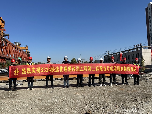 11月6日上午10點,S334(長江南路至繁陽大道段)快速化通道改造工程02標項目首片箱梁順利架設完成,標志著K9+956.4上跨站前路立交橋正式步入橋梁上部結構全面施工的大干階段。
