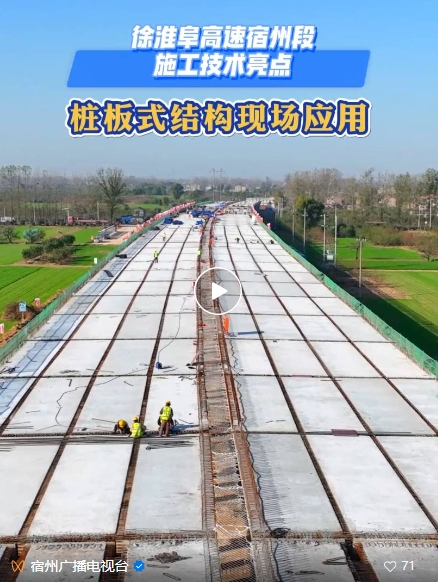 近日,宿州市廣播電視臺官方視頻號對建工建投集團徐淮阜高速宿州段項目路基施工技術亮點——樁板式結構現場應用展開報道。