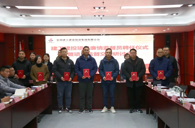 會(huì)上,宣讀了《關(guān)于聘任建工建投集團(tuán)項(xiàng)目廉情監(jiān)督員的決定》,為廉情監(jiān)督員代表頒發(fā)了聘書。2名受聘的廉情監(jiān)督員代表作了表態(tài)發(fā)言,表示將認(rèn)真學(xué)習(xí)領(lǐng)會(huì)廉政相關(guān)文件精神和各項(xiàng)規(guī)章制度,切實(shí)履行好項(xiàng)目監(jiān)督職責(zé),努力做到敢于監(jiān)督、認(rèn)真監(jiān)督、正確監(jiān)督。