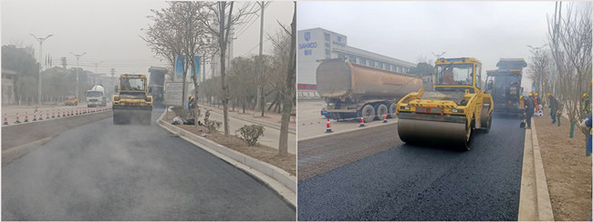 1月1日,伴隨機器進場,浙江嵊州項目主干道浙鍛路瀝青下面層攤鋪正式啟動,標志著項目瀝青路面施工正式拉開序幕。