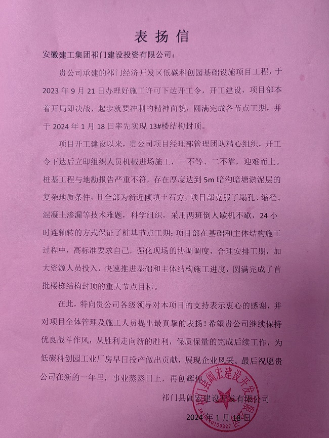 在后續工作中,祁門低碳科創園項目部全體人員將一如既往的發揚勇挑重擔、敢打敢拼的優良戰斗作風,以建工鐵軍精神保質保量的完成項目各項建設任務。