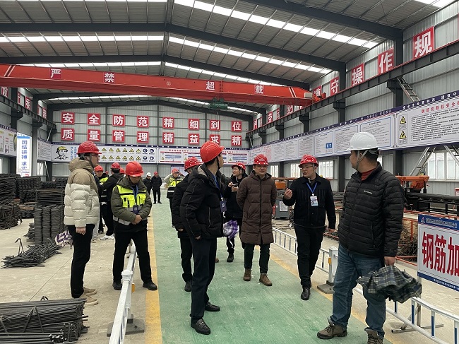 黃曉東一行聽取了項目負責人關于項目概況、項目駐地及場站建設等方案的詳細介紹,并通過項目沙盤模型,了解項目整體情況。黃曉東一行實地參觀了項目駐地辦公區、試驗室、鋼筋加工廠、拌合站及預制場等現場,對建工建投集團堅持高質量建設標準化項目表示高度贊賞,對項目管理團隊展現出的富有朝氣的精神風貌表示肯定。