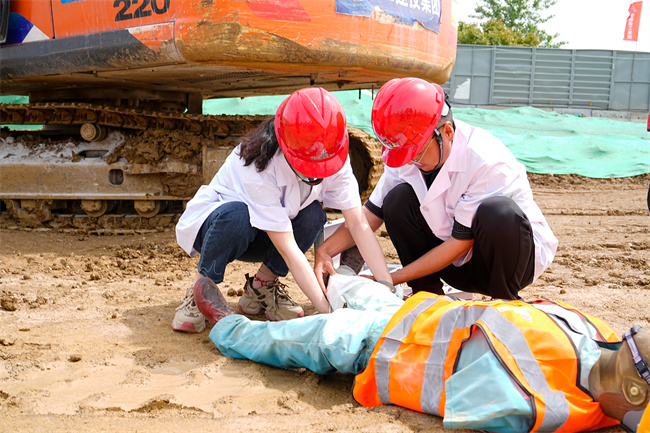 為深入開展全國防災減災日宣傳教育活動,提高應急能力,5月12日,安建交建公司在合肥市科學島北路、胡廟路、規劃支路、先進光源連接通道等 4 條道路施工項目開展機械傷害事故應急演練活動。科學島北路等4條路項目及外環西路項目管理人員、隊伍負責人、機械操作手約50余人參加活動。