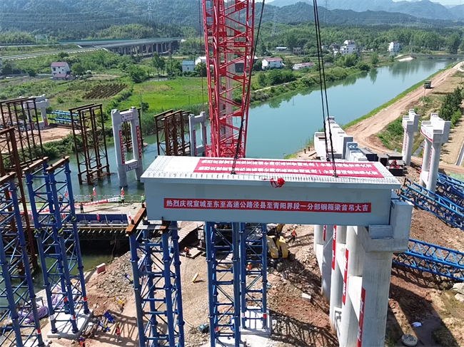 5月17日上午,涇青高速一分部首節(jié)鋼箱梁吊裝圓滿完成,標(biāo)志著項(xiàng)目全面進(jìn)入鋼箱梁吊裝施工的新階段,為實(shí)現(xiàn)全年施工目標(biāo)任務(wù)奠定了堅(jiān)實(shí)基礎(chǔ)。