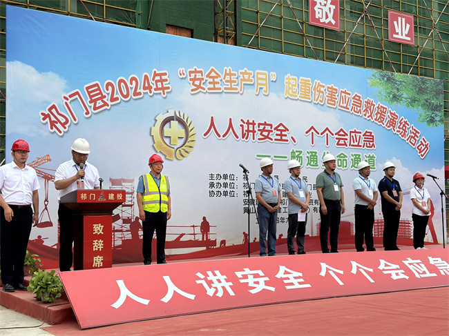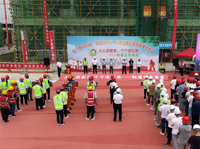 6月18 日,祁門縣2024年“安全生產(chǎn)月”起重傷害應(yīng)急救援演練活動(dòng)在祁門低碳科創(chuàng)園項(xiàng)目順利開(kāi)展。祁門縣人民政府、祁門縣應(yīng)急管理局、祁門縣住建局、祁門縣建筑業(yè)協(xié)會(huì)的相關(guān)領(lǐng)導(dǎo),以及祁門縣內(nèi)施工企業(yè)負(fù)責(zé)人、分管安全工作負(fù)責(zé)人、安全員和在建工程項(xiàng)目經(jīng)理、外地施工企業(yè)項(xiàng)目負(fù)責(zé)人和安全員、在建工程監(jiān)理負(fù)責(zé)人和建設(shè)開(kāi)發(fā)項(xiàng)目負(fù)責(zé)人約200人現(xiàn)場(chǎng)觀摩。