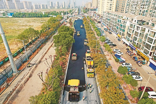 據悉,九華路(太白大道-霍里山大道)“白加黑”改造工程,西起太白大道,東至霍里山大道,全長4416米。此次進行瀝青攤鋪作業的九華路(慈湖河路-江東大道)北半幅快車道,長度為800米。