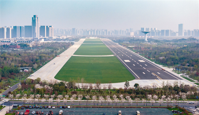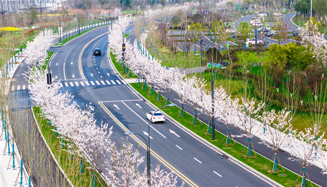 作為通往園博園的重要通道,青海路在景觀設計上與公園景觀高度融合,尤其是青海路(廬州大道-西寧路)段,全長1.3公里,兩側共計栽植318株染井吉野櫻花,是名副其實的“櫻花大道”。
