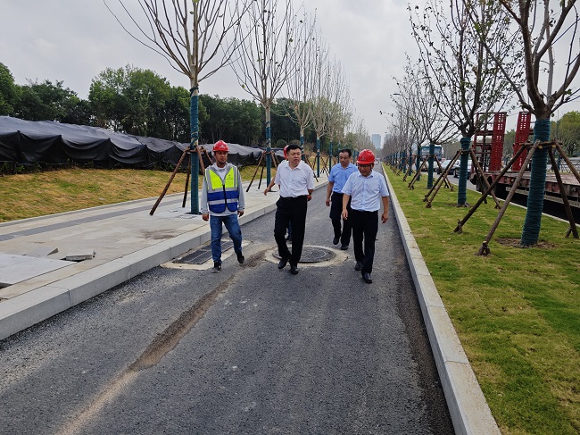 章浩一行深入青海路項目施工現場,實地了解項目收尾工作進展情況,重點關注項目沿線綠化施工,對項目苗木施工、樹池蓋板施工等表示高度認可。