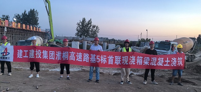 近日,建工建投集團淮桐高速5標項目首聯現澆箱梁混凝土順利完成澆筑,標志著項目重難點工程建設取得突破性進展。