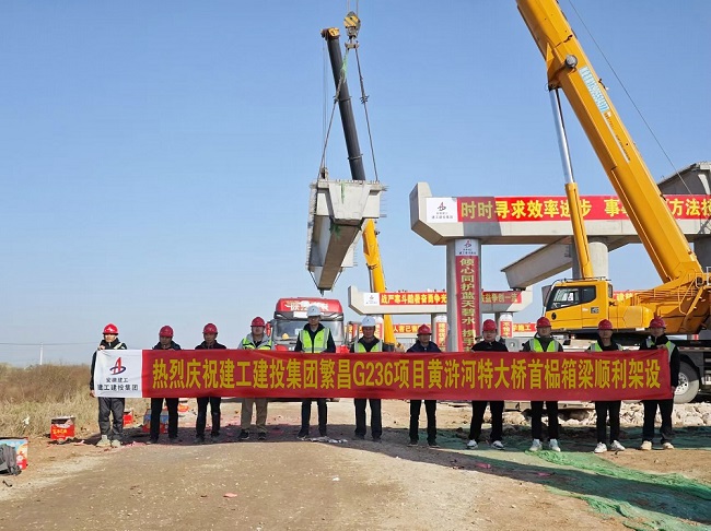 12月1日上午,由建工建投集團承建的繁昌區G236項目二標段控制性工程黃滸河特大橋首榀30m箱梁順利架設完成。