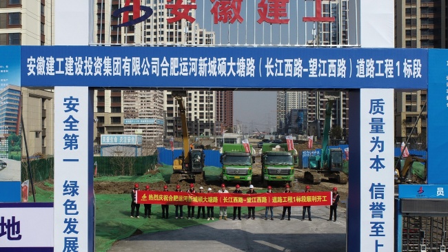 2025年2月19日上午10點18分,建工建投集團合肥運河新城碩大塘路(長江西路—望江西路)道路工程1標段項目開工儀式順利舉行。
