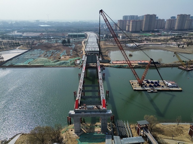 近日,隨著最后一節(jié)鋼箱梁精準(zhǔn)吊裝到位,由建工建投集團(tuán)承建的太和縣人民路潁河大橋及接線工程建設(shè)項(xiàng)目上跨內(nèi)河通航河道鋼箱梁主梁順利合龍,標(biāo)志著該項(xiàng)目關(guān)鍵節(jié)點(diǎn)圓滿完成。