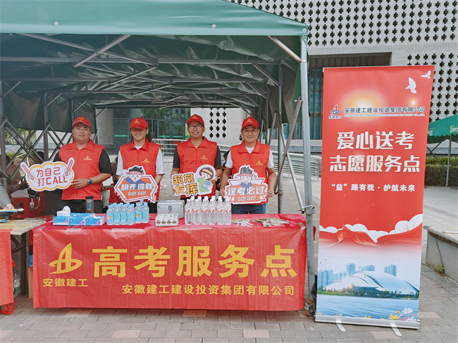 望江安建交通建設管理有限公司、望江安建安九公路建設有限公司在望江縣第三中學志愿點熱情地忙碌著,他們為考生準備了礦泉水,在考點門口維持秩序、引導考生入場,助力學子們安心應考。