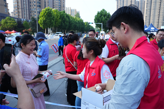寒窗苦讀十余載,只為今朝題名時。莘莘學子所有的努力都將綻放在美麗的六月,6月7日清晨,為助力高三學子順利高考,繁昌區G236項目以黨建帶團建,組織項目黨員、團員青年前往繁昌區第二中學設立“愛心助考”志愿服務點??键c現場,志愿者們提前準備了礦泉水、文具套裝、扇子、防暑降溫藥品等,為考生、家長、執勤的干警送去清涼與便利?!皠e緊張,加油!”“考試順利,金榜題名!”志愿者們站在路旁給他們遞水,同時送上一句句真摯祝福,考生們也微笑著表示感謝。一句祝福,一聲感謝,連接的是心與心的橋梁。