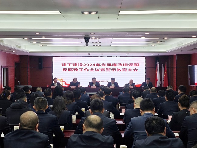 4月3日,建工建投黨委召開2024年黨風廉政建設和反腐敗工作會議暨警示教育大會。公司黨委書記、董事長任杰出席會議并講話,公司黨委副書記、工會主席干戈主持會議,黨委委員、紀委書記王學梅作紀委工作報告,公司領導班子成員出席會議。