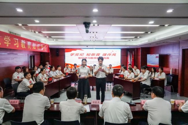 此次知識競賽分為個人必答題、團隊搶答題、團隊風險題、加時賽四個環節,內容涵蓋《中國共產黨章程》、新修訂的《中國共產黨紀律處分條例》、《中國共產黨廉潔自律準則》、《國有企業管理人員處分條例》等理論知識。比賽過程中,來自所屬各單位黨組織的10支代表隊嚴格遵守競賽規則,團結協作,現場緊張有序,氣氛熱烈。