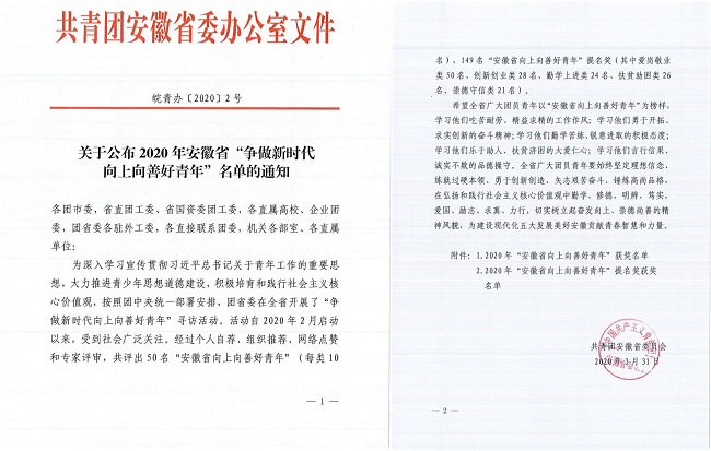 近日,安徽路橋集團西藏昌都項目安全總監(jiān)、西藏新瑞公司團支部書記王穎獲得2020年“安徽省向善向上好青年”提名獎。