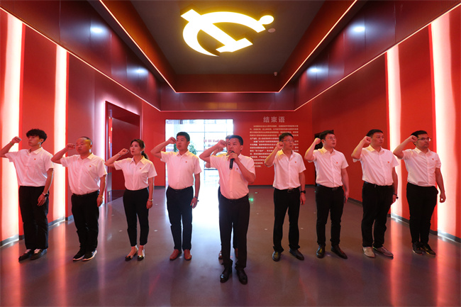 在講解員的引導(dǎo)下,參觀人員駐足觀看了全面從嚴治黨主題教育片《永遠在路上》,依次參觀了“紀律立黨從嚴治黨”、“廉潤江淮清風揚帆”、“以案為鑒警鐘長鳴”、“不忘初心永葆清廉”四個展廳。通過照片和案例,帶領(lǐng)大家回顧了中國共產(chǎn)黨的百年紀律建設(shè)史和為永葆先進性和純潔性,不斷防范被腐化、被瓦解危險的反腐倡廉史,展現(xiàn)了安徽省全面從嚴治黨、黨風廉政建設(shè)和反腐敗斗爭成果。參觀結(jié)束后,全體黨員面對黨旗高舉右拳,莊嚴宣誓,重溫入黨誓詞,堅守入黨初心。