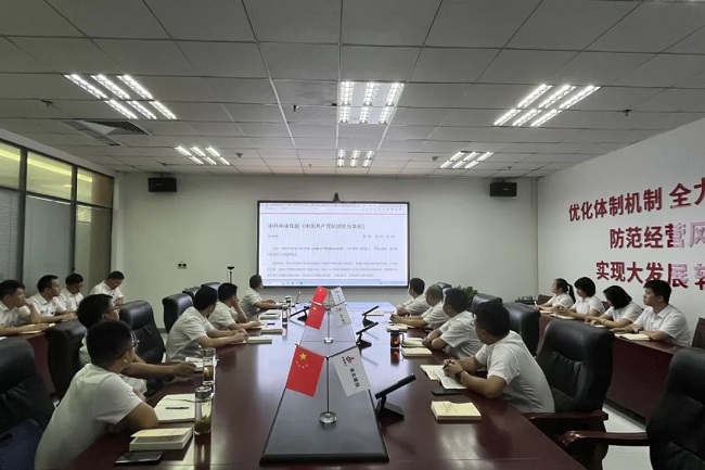 活動中,與會人員開展原文誦讀活動,接力誦讀《習近平新時代中國特色社會主義思想專題摘編》,通過一章一章讀、逐段逐句悟,認真學習其中蘊含的領導方法、思想方法、工作方法。隨后,大家集中學習了《中國共產黨紀律處分條例》、《中國共產黨廉潔自律準則》內容,不斷深化自身制度意識、規矩意識。黨支部書記蘭丙發開展題為《把學習貫徹習近平新時代中國特色社會主義思想不斷引向深入--凝心聚力,奮力開啟安徽建工淮北建投發展新局面》黨課,要求與會人員不斷提高履職能力和水平,按照新形勢、新任務、新要求,實現淮北建投工作的新突破、新發展。