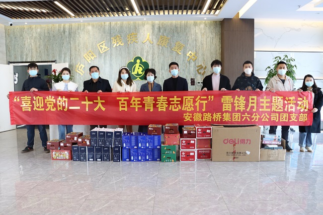 今年是全國第59個“學雷鋒紀念日”,也是第23個“中國青年志愿者服務日”。3月10日上午,六分公司團支部組織青年團員赴合肥市廬陽區殘疾人康復中心開展“喜迎黨的二十大 百年青春志愿行”雷鋒月活動,為康復中心的孩子們送上關懷與鼓勵。