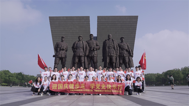 在鮮艷的五星紅旗下、在莊嚴的渡江戰(zhàn)役紀念館前,同志們一起高唱《歌唱祖國》,為偉大祖國慶生。百年恰是風華正茂!在中國共產(chǎn)黨的領導下,推翻舊制度,人民當家做主人;改革開放,經(jīng)濟快速騰飛,國家日益繁榮富強;脫貧攻堅戰(zhàn)取得全面勝利,千年小康夢照進現(xiàn)實……中國共產(chǎn)黨正帶領中華民族一步一個腳印走向偉大復興。