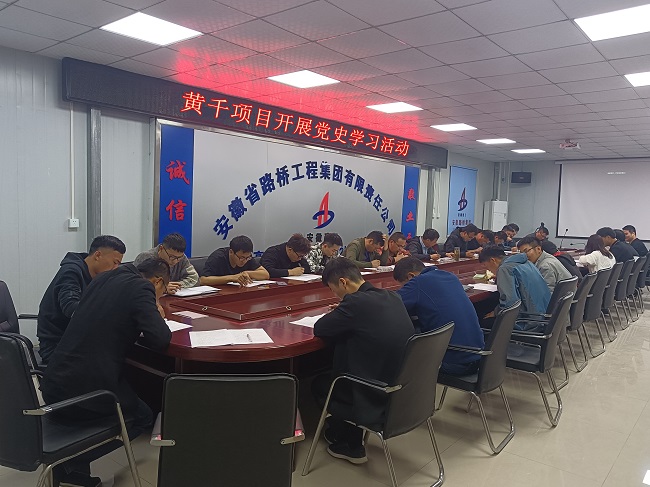 明巢高速滁州段、黃千高速02標及壽穎預制標項目員工分別在項目經理的帶領下學習了《中國共產黨簡史》的部分章節,引導全體項目員工飲水思源,加強黨史學習教育,深化對黨的信賴,堅定對黨的領導的信念。與會人員專注聽講,用心思考,認真記錄。