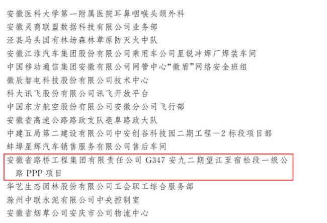 4月27日,2023年慶祝“五一”國(guó)際勞動(dòng)節(jié)暨全國(guó)五一勞動(dòng)獎(jiǎng)和全國(guó)工人先鋒號(hào)表彰大會(huì)在北京人民大會(huì)堂舉行。207個(gè)集體和1035名個(gè)人分獲全國(guó)五一勞動(dòng)獎(jiǎng)狀、獎(jiǎng)?wù)拢?044個(gè)集體獲全國(guó)工人先鋒號(hào)。由安徽建工建設(shè)投資集團(tuán)承建的G347安九二期PPP項(xiàng)目被中華全國(guó)總工會(huì)授予“全國(guó)工人先鋒號(hào)”榮譽(yù)稱號(hào)。