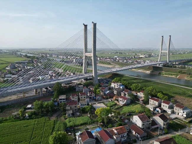 項(xiàng)目控制性工程楊灣河特大橋(望江大橋)全長(zhǎng)1322米,主跨365米,由685米雙塔預(yù)應(yīng)力混凝土斜拉橋與637米東西引橋組成,主塔塔高110米,是安徽省在建同類預(yù)應(yīng)力鋼筋混凝土斜拉橋第二大跨徑橋梁,也是安徽建工集團(tuán)目前承接單跨跨徑最大的橋梁工程。