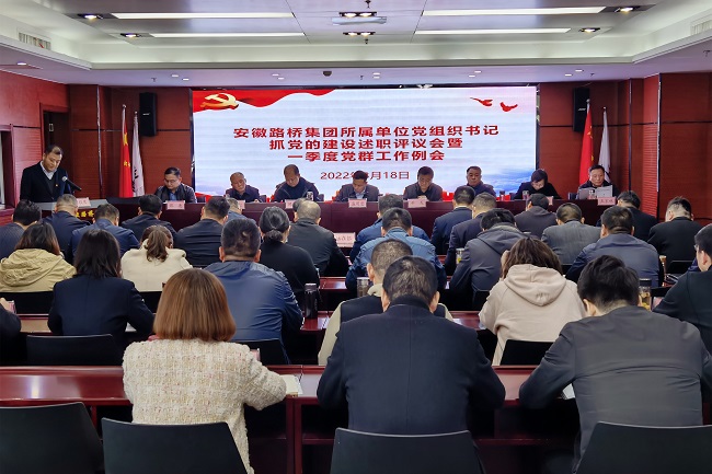 3月18日,安徽路橋集團黨委召開2021年度所屬單位黨組織書記抓黨建述職評議會暨一季度黨群工作例會。黨委書記、董事長盛明宏出席會議,黨委副書記干戈傳達建工控股黨委副書記、工會主席牛曙東信訪穩定工作講話精神,黨委委員、副總經理、總工程師陳莘主持會議。