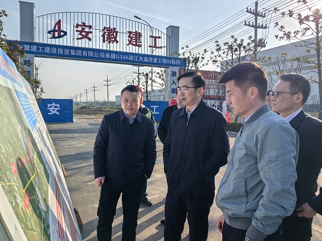 3月17日,馬鞍山市委常委,市政府常務副市長、黨組副書記夏迎鋒一行赴建工建投集團承建的G346濱江大道改建工程(G346和縣烏江至南京浦口段公路工程)施工02標段項目調研,和縣縣長劉凌晨、和縣常務副縣長陶振華、市交通局、和縣交通運輸局、和縣公路分中心等相關負責同志參加調研。