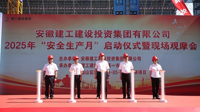 5月30日上午,建工建投集團2025年“安全生產月”活動啟動儀式暨現場觀摩會在蜀山SS11-G-05-02號地塊項目舉行。建工建投集團黨委書記、董事長任杰宣布活動正式啟動,黨委委員、副總經理孫偉作動員部署講話,并帶領全體人員進行安全宣誓。建工建投集團領導班子、機關各部門負責人、各子分公司主要負責人、分管生產安全負責人、項目經理等80余人參加儀式。