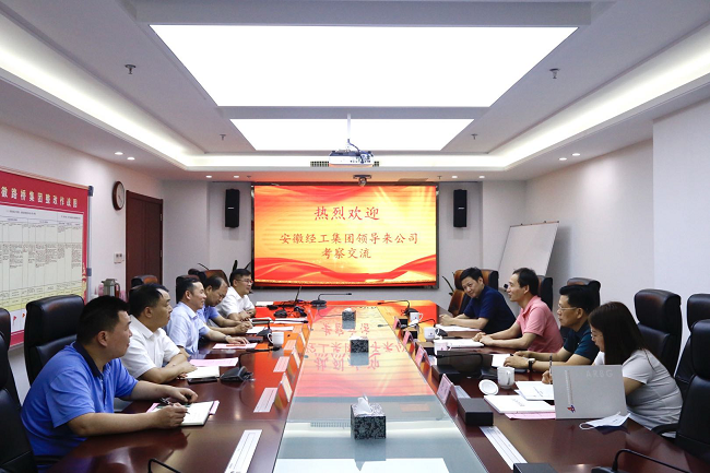 7月14日下午,安徽經(jīng)工集團(tuán)黨委書記、董事長王傳寶帶隊來公司考察交流,公司黨委書記、董事長盛明宏接待了王傳寶一行,并于公司會議室召開座談會。