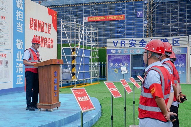 演練結束后,與會人員實地觀摩了高科·模數科技港項目現場安全管理、建筑智能化設備展示及安全體驗區,并進行現場交流。