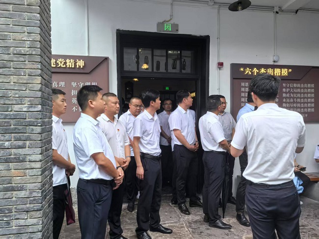 在重慶周公館,指揮部一行在講解員的帶領(lǐng)下,詳細(xì)了解了抗戰(zhàn)時(shí)期周恩來同志在重慶的革命活動(dòng)以及中共南方局的重要?dú)v史貢獻(xiàn)。通過參觀館內(nèi)珍貴的歷史照片、文獻(xiàn)資料和實(shí)物展品,全體黨員深刻感受到了老一輩革命家堅(jiān)定的理想信念和崇高的革命精神。參觀結(jié)束后,全體黨員面對(duì)黨旗重溫入黨誓詞。